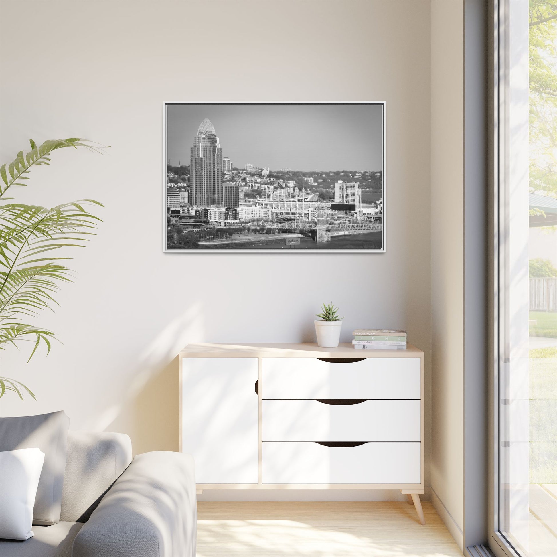 Cincy in the Fall Wall Art — Black & White Cityscape Print