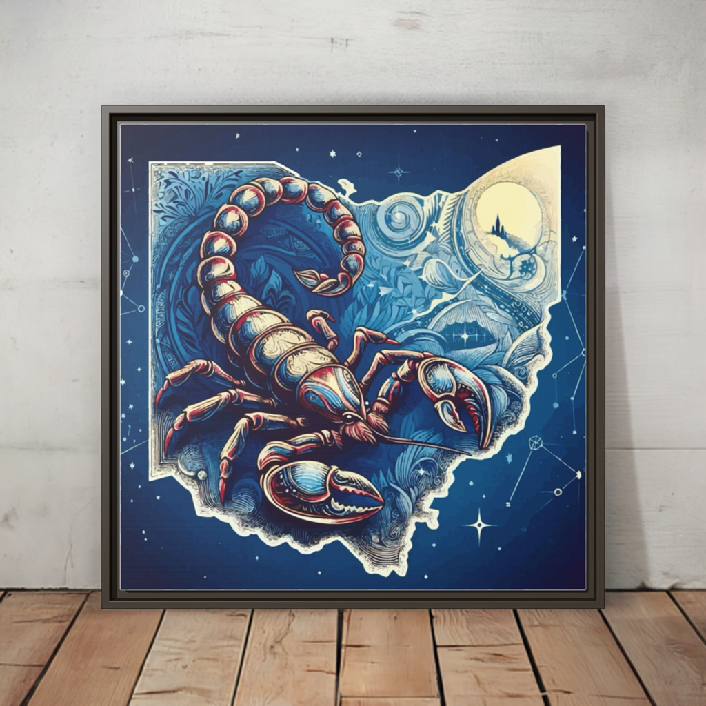 The Ohio Scorpion is a secrete discoverer who is determined, talented, powerful, and brave. This vibrant and unique matte canvas print is perfect for those who appreciate art with a touch of mystery and adventure. It is ideal for decorating a home office, living room, or bedroom, and makes a great gift for art lovers and those who enjoy the unexpected.