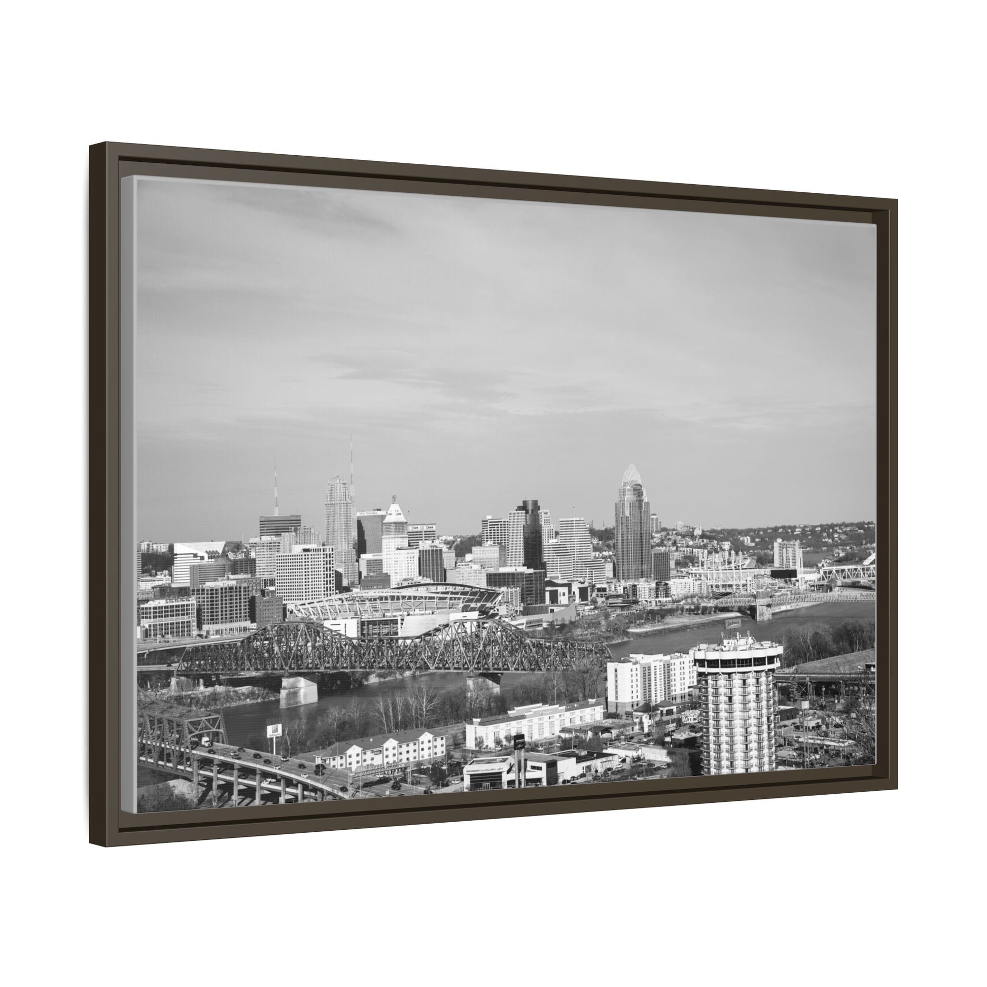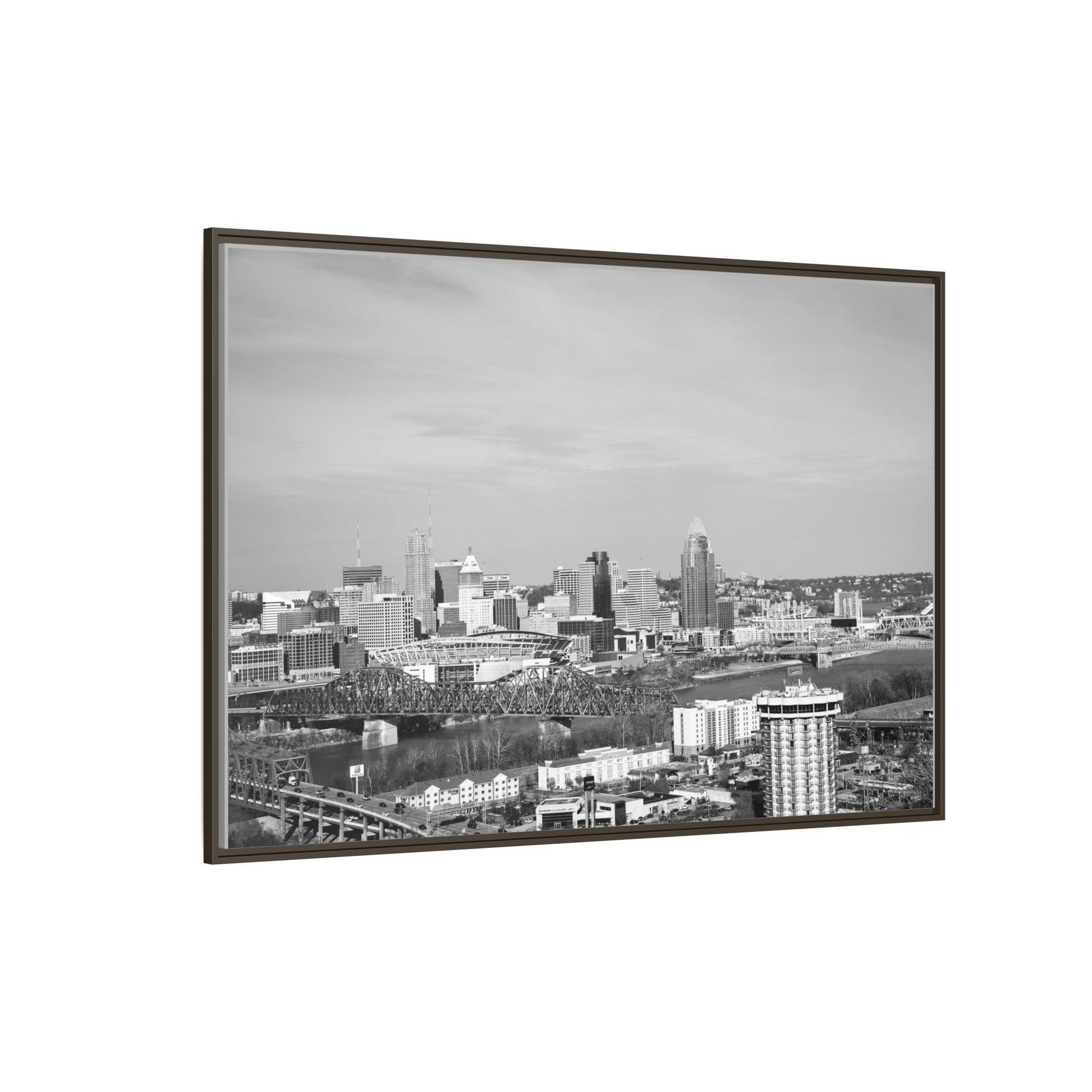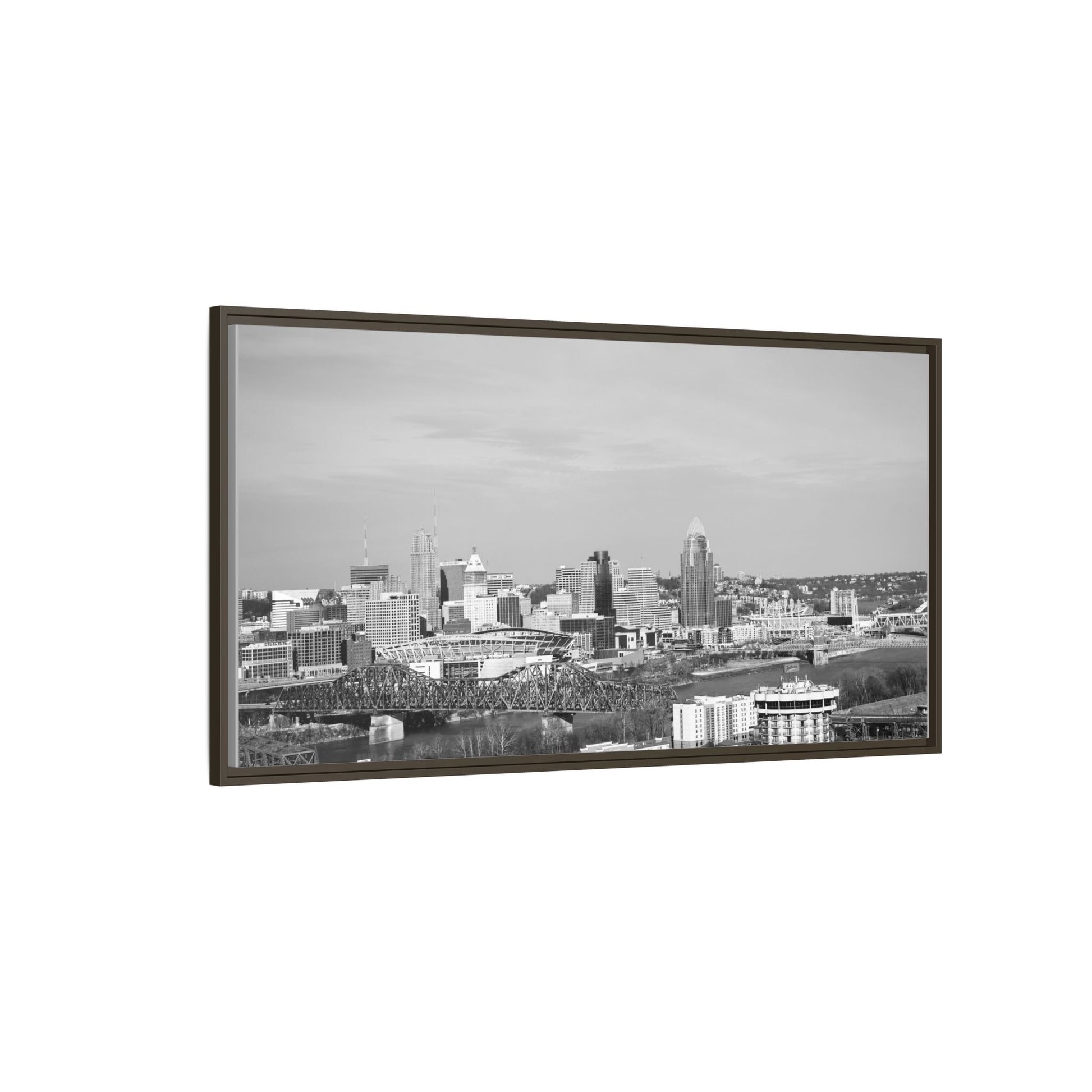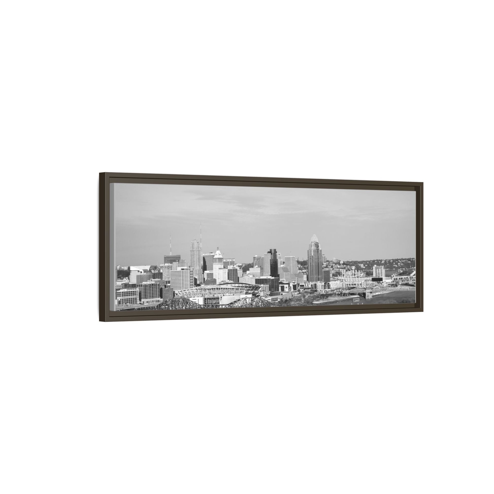 Framed Matte Canvas Chilly Skyline Cincy Print — Black & White Urban Wall Art